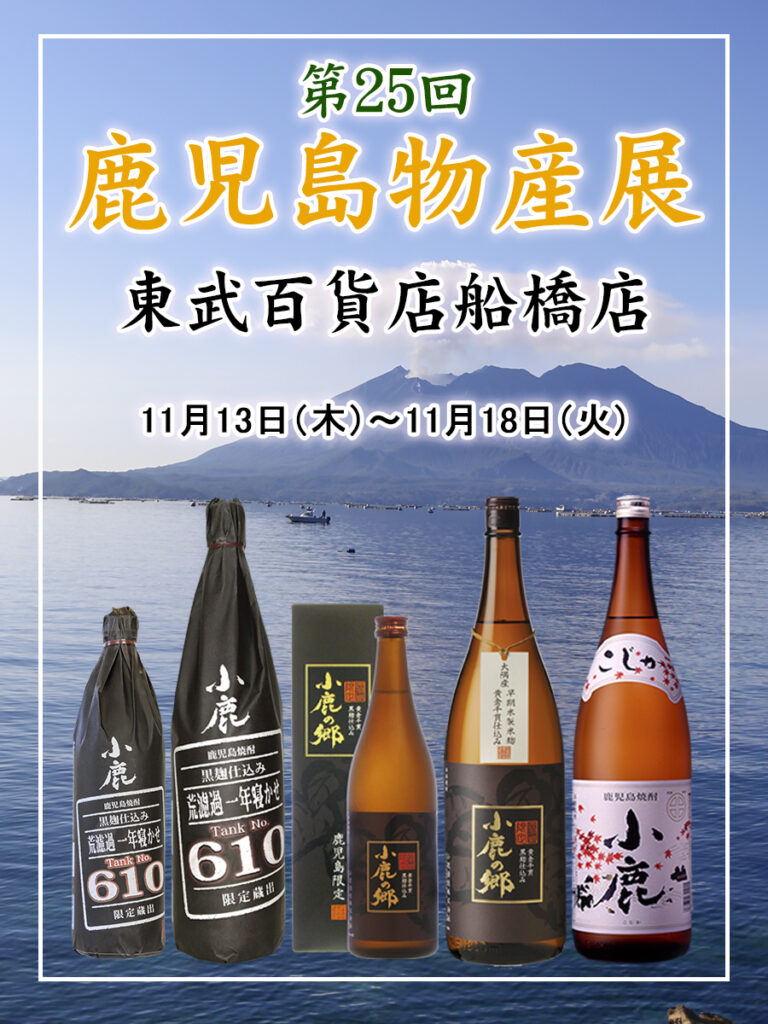 2025年11月13日(木)より東武百貨店船橋店にて『第25回 鹿児島物産展』が開催され、小鹿酒造も出展いたします。